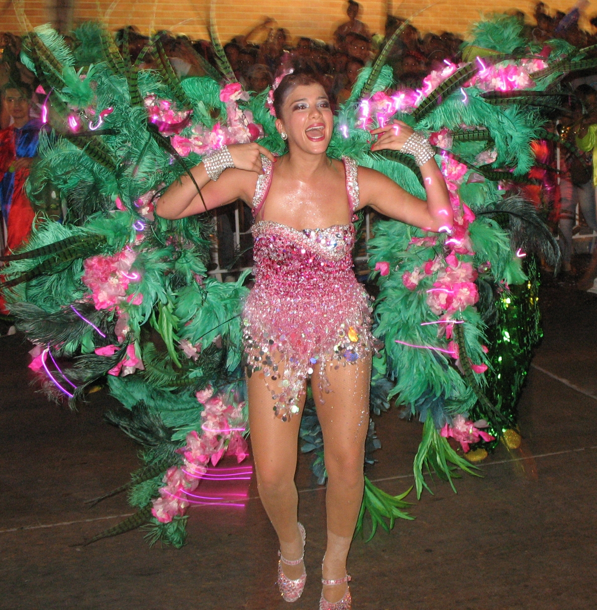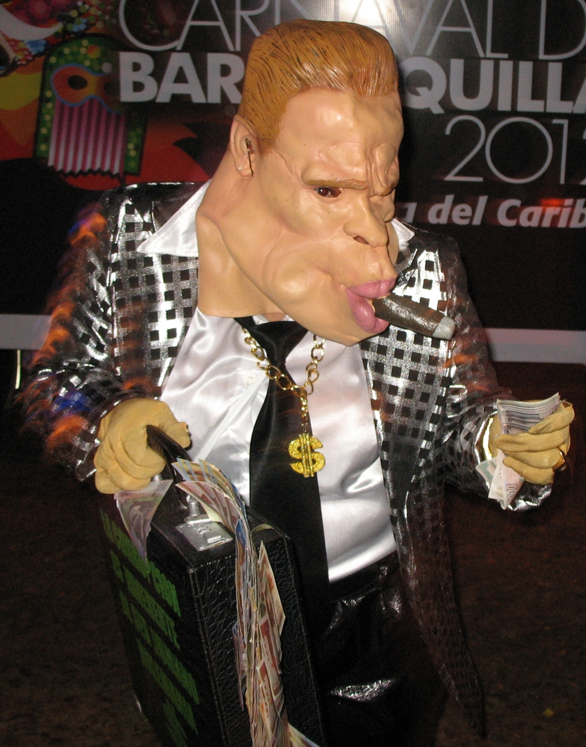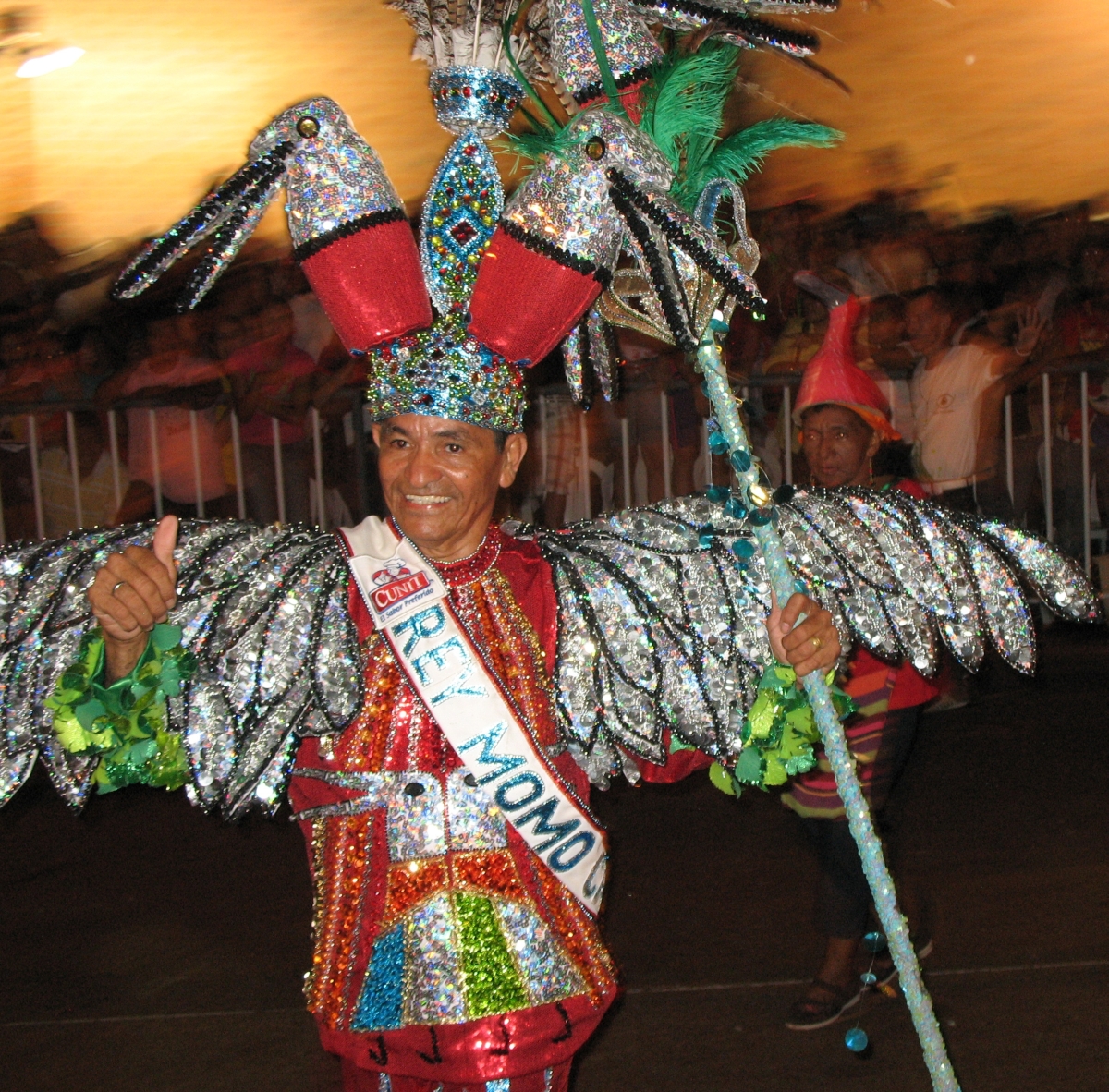 En effet, « guacherna » veut dire « désordre » en costeño. Je m’explique : Les autres défilés sont plutôt bien organisés (du moins, si l’on peut parler d’organisation en Colombie !) dans la mesure où les participants doivent obéir à des règles plutôt strictes : Pour commencer, ils doivent faire partie d’un groupe officiel pour s’inscrire. Ensuite, en fonction des défilés, ils doivent porter des costumes traditionnels et ils doivent danser sur des airs non moins traditionnels. Ils ne peuvent pas faire marche arrière et doivent suivre un ordre établi. Rien de tout cela dans La Guacherna : chacun peut y participer. Chacun peut porter le costume qu’il veut. Chacun peut faire ce qu’il veut dans le défilé (dans la mesure où ils ne doivent pas gêner les autres, bien naturellement).