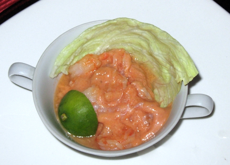 Langoustines (Pomona) – sauce Marie-Rose. Le secret de la sauce est l’ajout de quelques gouttes de Tabasco.