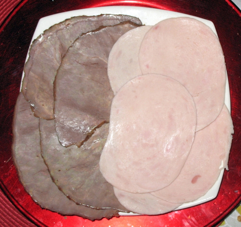 Tranches de roastbeef (Jumbo)et de blanc de dinde (Pomona). C’est là que la moutarde Maille, les cornichons croquants et les petits onions blancs sont devenus indispensables !
