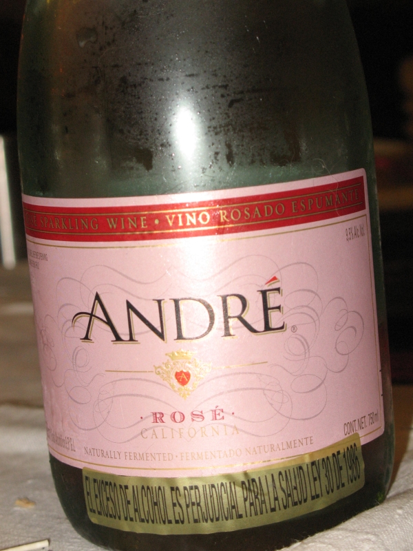 Un excellent champagne vin rosé mousseux de Californie s’appelant ‘André’. Je le recommande vraiment, car il n’est pas trop sucré et il a une saveur exquise.